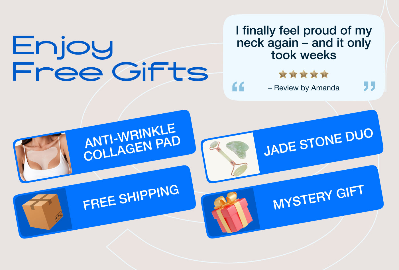 Consistent use promotes sustained collagen renewal and lasting hydration. Your neck stays firm, radiant, and beautifully renewed.