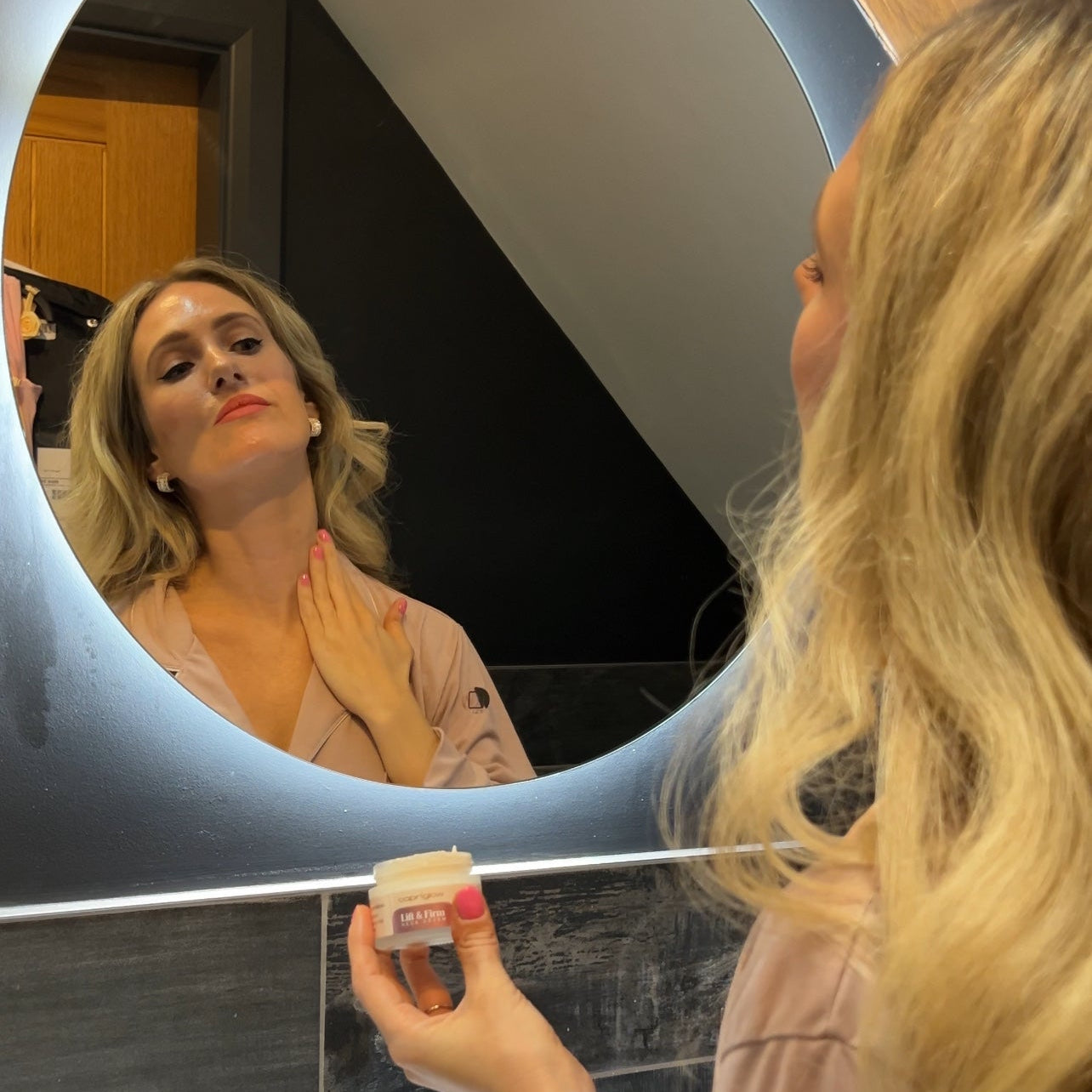 Our Lift & Firm Neck Cream is designed to care for the delicate skin of the neck using a balance of science and botanicals that work together to renew and refine.